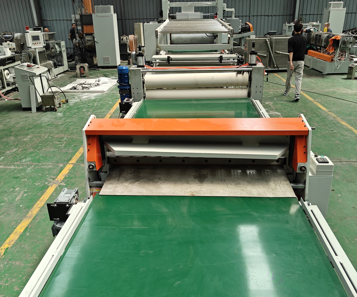 ,只需少量人工干預(yù)即可完成。塑料片材生產(chǎn)線的應(yīng)用領(lǐng)域非常廣泛。在包裝行業(yè),塑料片材常用于制作食品包裝盒、藥品包裝、電子產(chǎn)品包裝等,其輕便、防潮、耐腐蝕的特性深受青睞。在建筑領(lǐng)域,塑料片材可用于制作隔音板、隔熱板、裝飾板等,不僅重量輕、安裝方便,還具有優(yōu)異的耐候性和抗老化性能。廣告行業(yè)則利用塑料片材制作燈箱、展板、標(biāo)識牌等,其表面光滑、色彩鮮艷的特點能夠有效吸引眼球。此外,家居行業(yè)也大量使用塑料片材制作家具面板、浴室隔斷等,既美觀又實用。