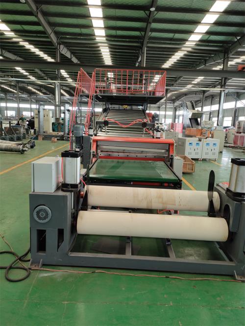 不用擔(dān)心長時間使用水冷卻會產(chǎn)生水垢把冷卻器堵住,導(dǎo)致齒輪箱損壞3.主機(jī)水箱冷卻系統(tǒng)采用:采用環(huán)保冷卻系統(tǒng)(環(huán)保型:發(fā)明專利號CN201911312134.6)不需要接外循環(huán)水冷卻,不用徘外水;采用閉環(huán)循環(huán)系統(tǒng),4.真空泵采用環(huán)保冷卻系統(tǒng)(環(huán)保型:發(fā)明專利號:CN201911312115.3)不需要接外循環(huán)水冷卻,隔音內(nèi)飾片材生產(chǎn)線不用徘外水;采用閉環(huán)循環(huán)系統(tǒng),節(jié)約水成本:2.2KW真空泵是每小時用水量是:0.25立方,24小時*0.25立方*300天* 3元水費(fèi)=5400元水費(fèi)/年5.節(jié)能:普通筒體筒體冷卻;例如:第5區(qū)溫度超高;這是電子閥導(dǎo)通;第5區(qū)冷卻回水就會影響第六區(qū)和第四區(qū)的溫度下降;就會導(dǎo)致第四六區(qū)加溫;這種情況會一直循環(huán)出現(xiàn);導(dǎo)致電費(fèi)浪費(fèi);我們現(xiàn)在采用環(huán)保型就徹底解決這個問題;我們設(shè)備比同類設(shè)備節(jié)能:10-15%電費(fèi)6.三輥冷卻:水箱冷卻系統(tǒng)采用:采用環(huán)保冷卻系統(tǒng)(環(huán)保型:發(fā)明專利號:CN111745936A)不需要接外循環(huán)水冷卻,不用徘外水;采用閉環(huán)循環(huán)系統(tǒng)7.減少投資款:3米*3米*2.5米冷卻水池;60立方冷卻水塔及4KW高壓水泵2臺及管道,10天施工費(fèi)用:能減少固定投資大概:10-12萬元左(二)自動翻斗提升機(jī):參數(shù)為1、上料電機(jī)功率:2.2kw;提升料斗為不銹鋼材質(zhì),需滿足300kg/鍋,確保安全。2、隔音內(nèi)飾片材生產(chǎn)線將捏煉機(jī)捏煉后的團(tuán)狀物料輸送至錐雙喂料機(jī)內(nèi)(三)雙螺桿制喂料機(jī):一臺 1)電機(jī)功率:11kw,采用“三晶”變頻調(diào)速器。喂料螺桿:錐形雙螺桿強(qiáng)制下料,氮化鍍鉻處理,表面光潔度高。喂料體:內(nèi)表面拋光、鍍硬鉻處理,光潔耐磨。2)喂料斗:內(nèi)表面拋光、鍍硬鉻處理,光潔耐磨;采用鎖扣式安裝防護(hù)罩,要求便于更換和維修保養(yǎng)。可推拉式,方便移動。